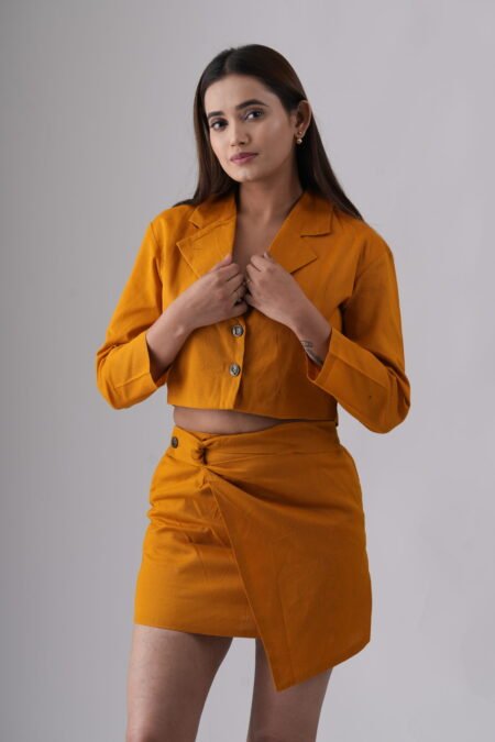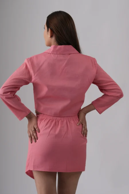 Pastel Pink Crop Coat Asymmetrical Overlay Skirt Co Ord Set