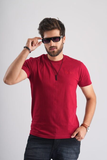 Maroon Round Neck T-Shirt with Pablo Embroidery