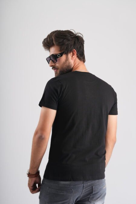 Black Round Neck T-Shirt with Pablo Embroidery
