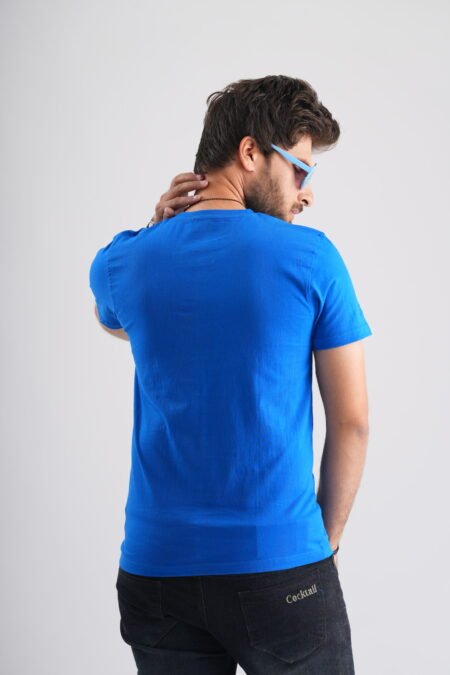 Blue Round Neck T-Shirt with White Print