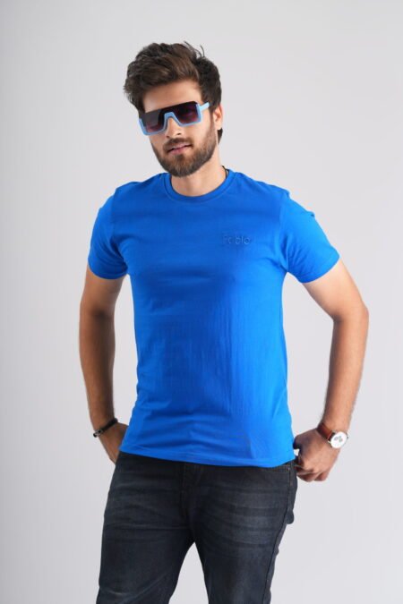 Blue Round Neck T-Shirt with Pablo Embroidery