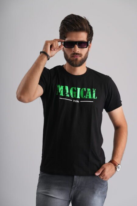 Magical Green Print Black Party-Wear T-Shirt
